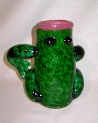![]() Purple background, Dichroic swirl with Silver/Yellow lip wrap |